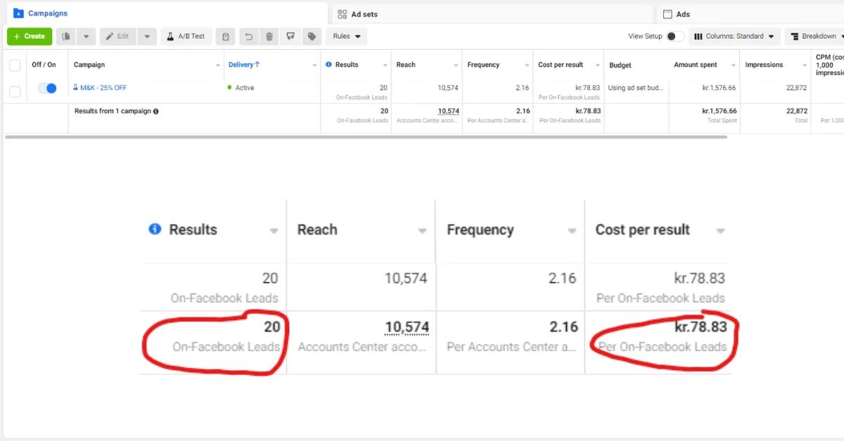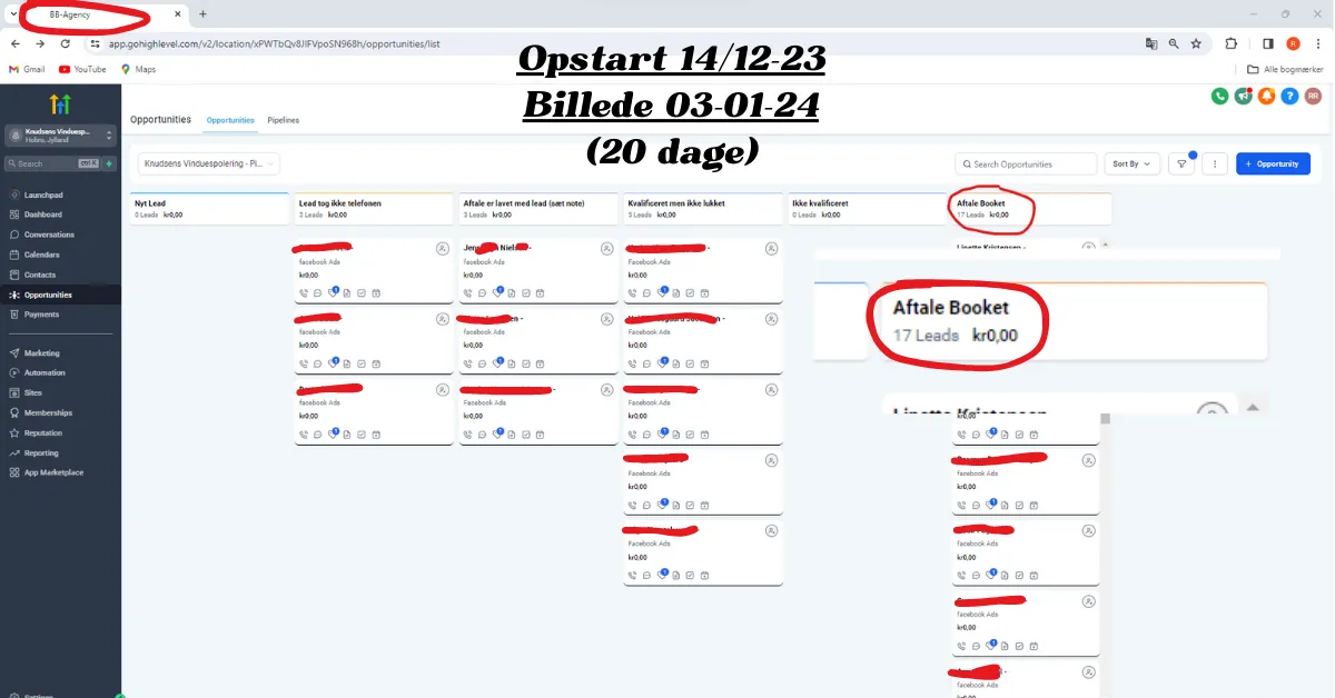 17 UDFYLDTE KONTAKTFORMULARE PÅ 3 DAGE I DECEMBER (38kr pr. lead)